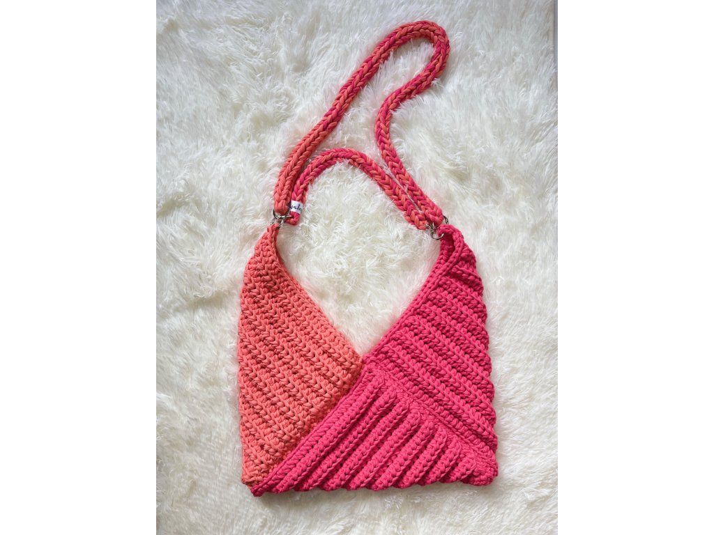 Rozměry: 34 x 36 x 4 (ve spodním trojůhelníkovém cípu je výška 18 cm), kratší popruh je dlouhý 33 cm, delší popruh 78 cm.