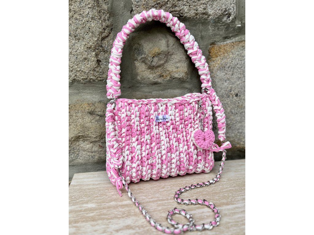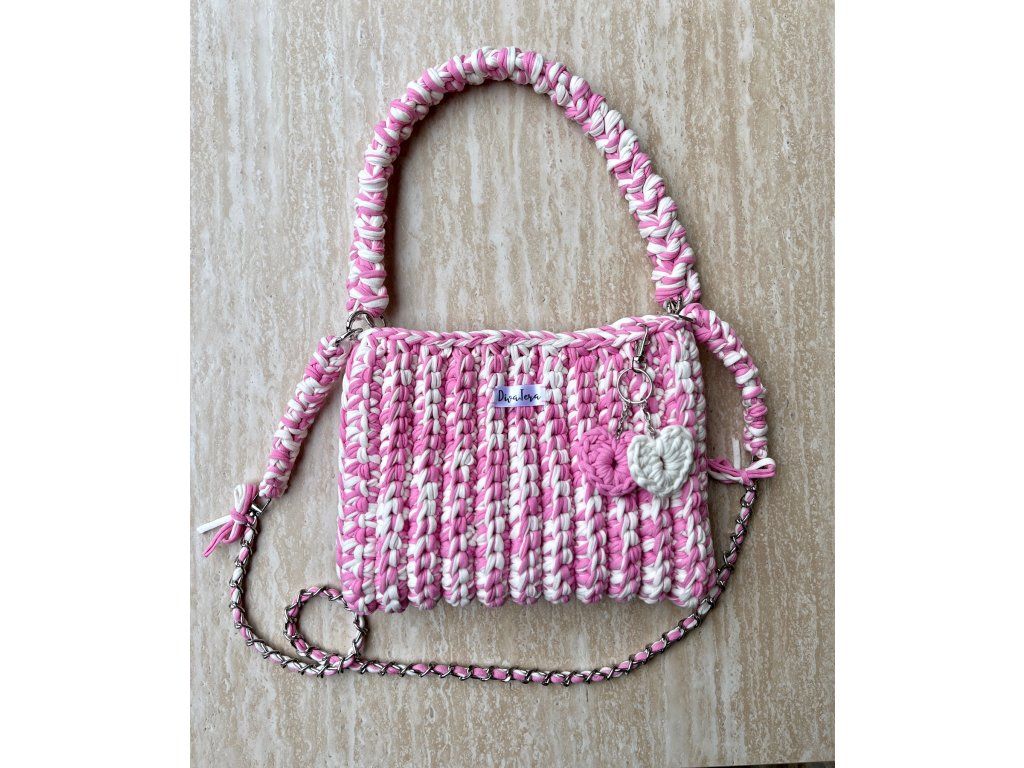 Kabelka s dvojitým popruhem a magnetickým zapínáním. Popruhy jsou mírně pružné a dají se jednotlivě odepnout.