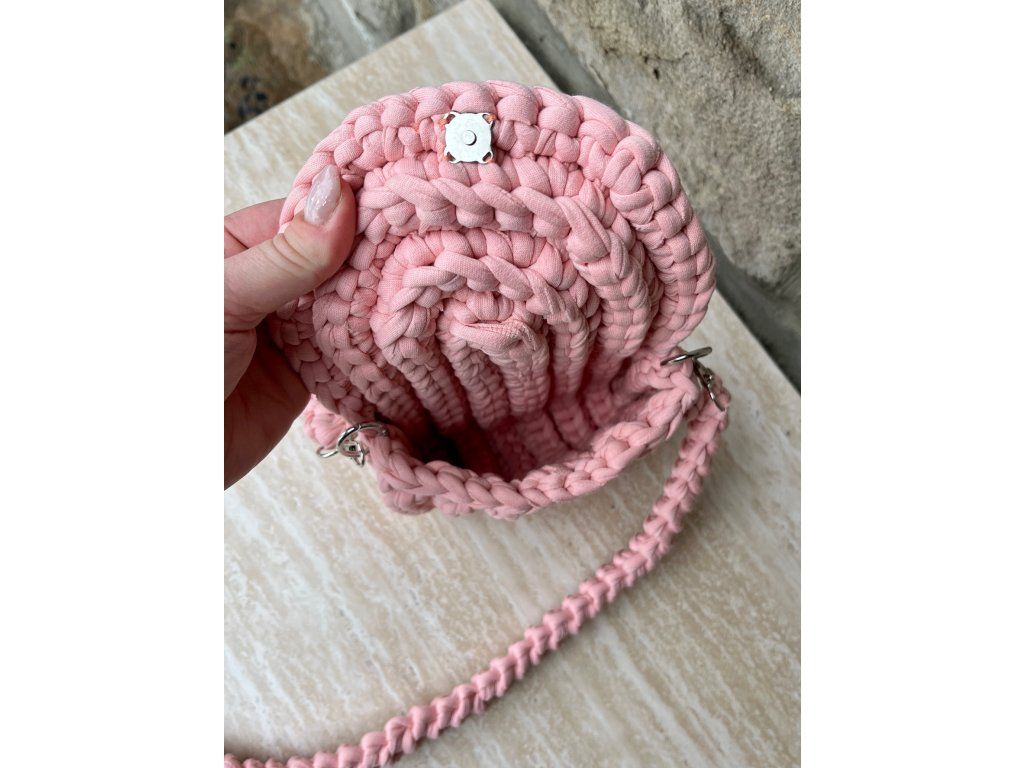 Mini kabelka s magnetickým zapínáním. Popruh je mírně pružný.