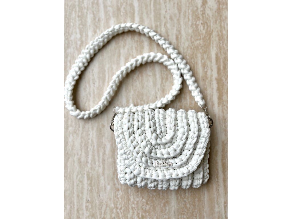 Mini kabelka s magnetickým zapínáním. Popruh je mírně pružný.